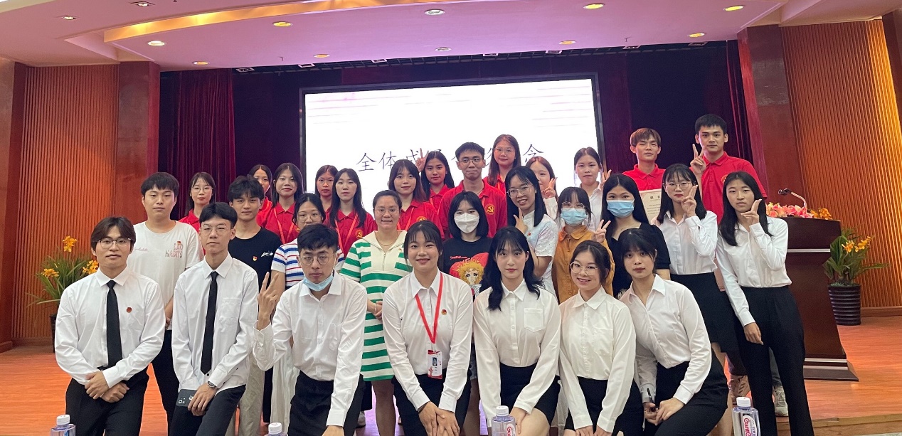 大會以對領(lǐng)導(dǎo)老師的介紹后,開始步入正軌。首先全體起立,奏唱國歌。每個人都精神抖擻,唱響激情澎湃的國歌。其次集體觀看回憶工作記錄,回憶過去工作成就。隨之幾位代表進行發(fā)言和祝福,20級黨建小組隊長代表辛婷婷表示,過往的汗水和付出,離不開新人和舊部的攜手共進,新一屆換屆大會是新征程的開始,長路漫漫,未來可期,最后希望黨建小組在老師帶領(lǐng)下欣欣向榮; 21級黨建干事代表陳嘉莉說道,換屆如同接力棒的交接,后輩將接力棒接到手中,將黨建工作越做越好,將黨的精神傳承下去。然后,由劉嘉怡老師對20級黨建小組優(yōu)秀干部授予證書。獲獎是新的起點,一份榮譽,一份責(zé)任,未來可期。
