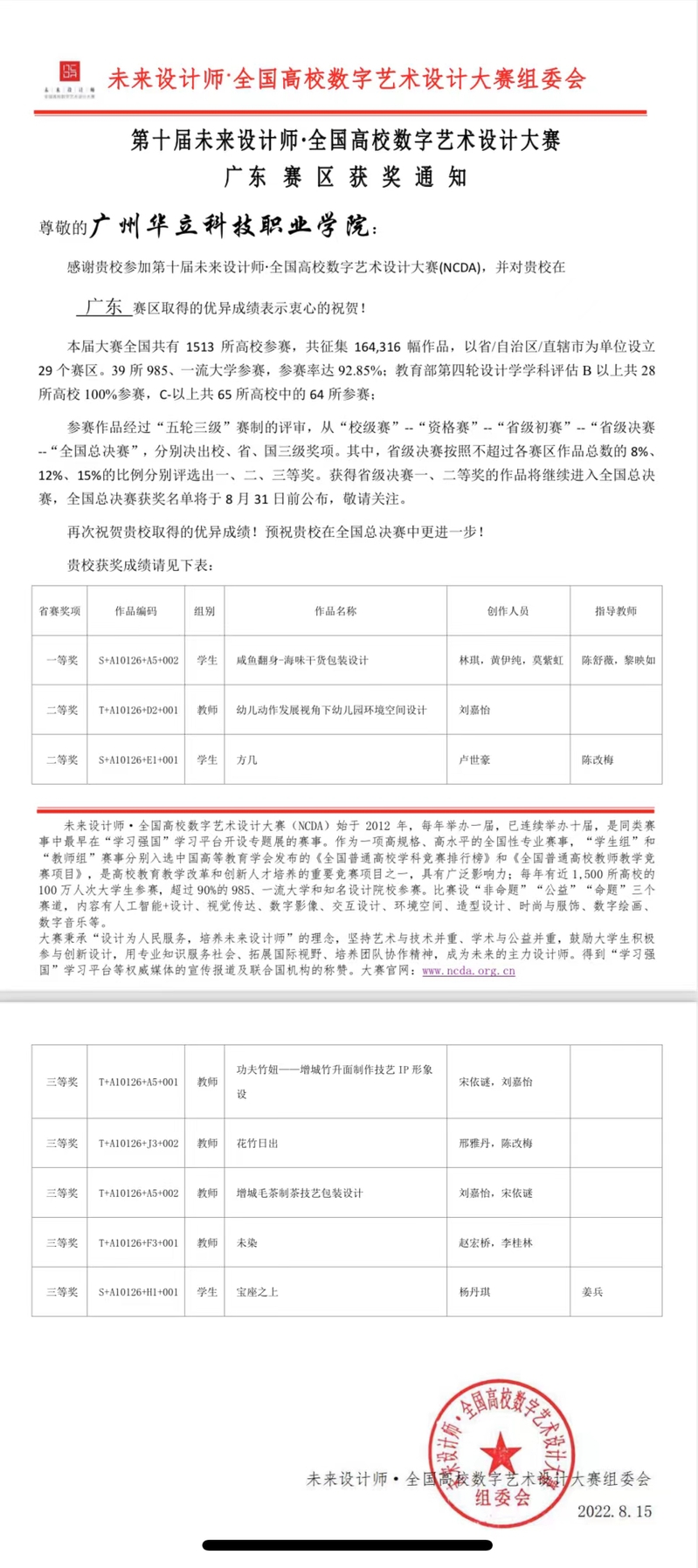 大賽是由工業(yè)和信息化部人才交流中心主辦,列入中國(guó)高等教育學(xué)會(huì)《全國(guó)普通高校學(xué)科競(jìng)賽排行榜》的藝術(shù)設(shè)計(jì)領(lǐng)域高水平比賽,參賽院校陣容強(qiáng)、層次高、區(qū)域廣、梯隊(duì)全,是大學(xué)生積極參與、具有廣泛影響力的專業(yè)賽事之一。
