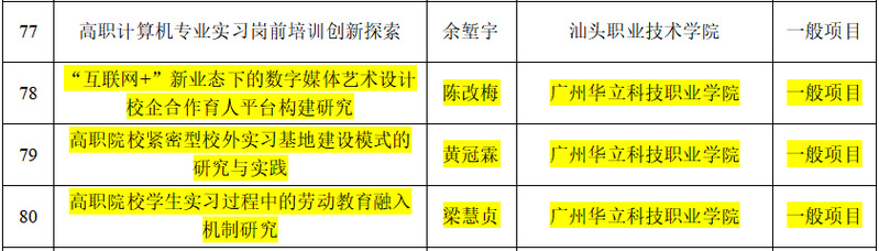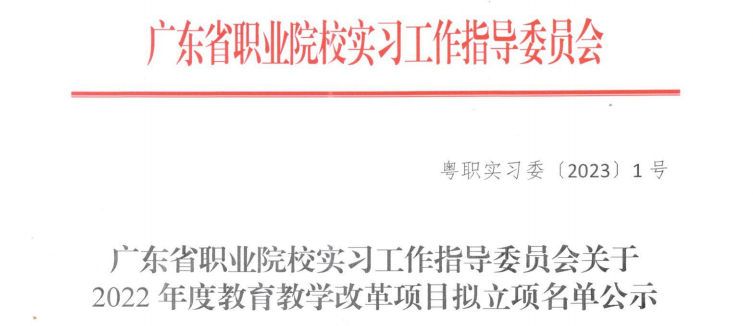 廣東省職業(yè)院校實習工作指導委員會2022年12月啟動了教育教學改革項目申報工作,經(jīng)學校推薦、形式審查、專家評審等程序,現(xiàn)予以公示。根據(jù)公示結果,我校三位老師的課題獲得立項,其中我院陳改梅老師的課題獲得立項。