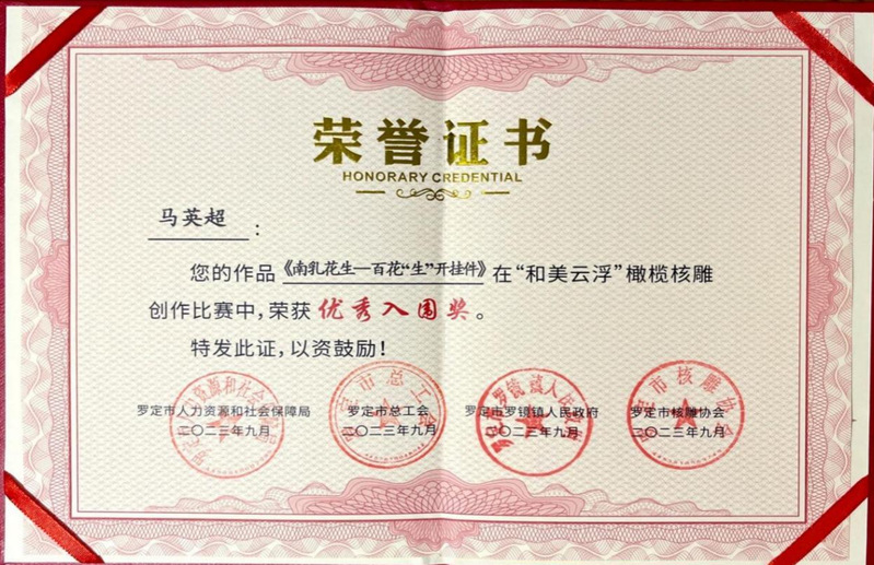 “和美云浮”橄欖核雕大賽,由云浮市文學(xué)藝術(shù)界聯(lián)合會指導(dǎo),羅定市人力資源和社會保障局、羅定市總工會、羅定市羅鏡鎮(zhèn)人民政府、羅定市核雕協(xié)會、云浮市民間文藝家協(xié)會聯(lián)合主辦。大賽參照工藝品雕刻工國家職業(yè)技能高級工標(biāo)準(zhǔn),以體現(xiàn)橄欖核雕藝術(shù)特點、兼具實用性、觀賞性和展示性為原則。大賽考量創(chuàng)作者的主題思想把握、核雕藝術(shù)特色、工藝手法技巧、藝術(shù)創(chuàng)意水平、形象空間美感等。自“和美云浮”橄欖核雕創(chuàng)作比賽啟動以來,得到來自:吉林、廣州、韶關(guān)、番禺和云浮市、羅定等廣大核雕創(chuàng)作藝人的積極響應(yīng)和廣泛參與,經(jīng)過1個多月的預(yù)賽和決賽比拼,9月24日,在“慶豐收促和美”—2023 廣東云浮·羅定稻米金香暨第二屆橄欖核雕文化活動啟動儀式上,公布了結(jié)果并舉行頒獎儀式。