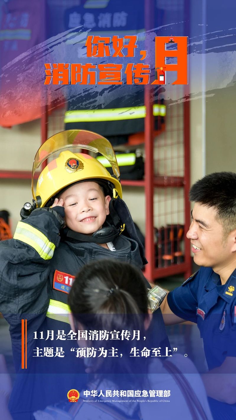 2023年11月9日是第32個(gè)全國(guó)消防日,國(guó)務(wù)院安委會(huì)辦公室決定于11月在全國(guó)開(kāi)展消防宣傳月活動(dòng),主題是:“預(yù)防為主,生命至上”