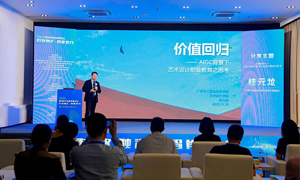 在論壇期間,還舉辦了多個(gè)分論壇和研討會(huì),涵蓋了數(shù)字創(chuàng)意產(chǎn)業(yè)的多個(gè)領(lǐng)域。廣東輕工職業(yè)技術(shù)學(xué)院藝術(shù)設(shè)計(jì)學(xué)院院長桂元龍以《價(jià)值回歸——AIGC背景下藝術(shù)設(shè)計(jì)職業(yè)教育之思考》為題進(jìn)行了精彩的分享與研討。此次論壇為我校數(shù)字藝術(shù)設(shè)計(jì)教學(xué)的改革和發(fā)展提供了一個(gè)廣闊的視野和寶貴的契機(jī),通過深入探討和交流為數(shù)字產(chǎn)業(yè)的未來發(fā)展提供了新的思路和方向。我校將強(qiáng)化與行業(yè)企業(yè)的全方位、深層次、多形式合作,促進(jìn)專業(yè)優(yōu)化、人才培養(yǎng)與產(chǎn)業(yè)需求匹配,促進(jìn)科技資源創(chuàng)新性發(fā)展,期待著數(shù)字創(chuàng)意產(chǎn)業(yè)在未來的發(fā)展中能夠不斷取得新的突破和成就。