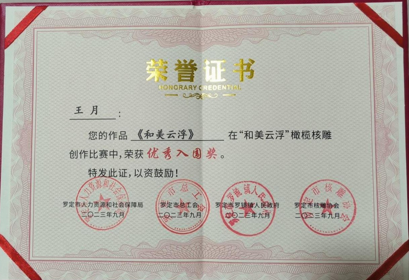 “和美云浮”橄欖核雕大賽,由云浮市文學(xué)藝術(shù)界聯(lián)合會(huì)指導(dǎo),羅定市人力資源和社會(huì)保障局、羅定市總工會(huì)、羅定市羅鏡鎮(zhèn)人民政府、羅定市核雕協(xié)會(huì)、云浮市民間文藝家協(xié)會(huì)聯(lián)合主辦。大賽參照工藝品雕刻工國(guó)家職業(yè)技能高級(jí)工標(biāo)準(zhǔn),以體現(xiàn)橄欖核雕藝術(shù)特點(diǎn)、兼具實(shí)用性、觀賞性和展示性為原則。大賽考量創(chuàng)作者的主題思想把握、核雕藝術(shù)特色、工藝手法技巧、藝術(shù)創(chuàng)意水平、形象空間美感等。自“和美云浮”橄欖核雕創(chuàng)作比賽啟動(dòng)以來,得到來自:吉林、廣州、韶關(guān)、番禺和云浮市、羅定等廣大核雕創(chuàng)作藝人的積極響應(yīng)和廣泛參與,經(jīng)過1個(gè)多月的預(yù)賽和決賽比拼,9月24日,在“慶豐收促和美”—2023 廣東云浮·羅定稻米金香暨第二屆橄欖核雕文化活動(dòng)啟動(dòng)儀式上,公布了結(jié)果并舉行頒獎(jiǎng)儀式。