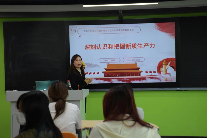 藝術(shù)與傳媒學(xué)院黨總支教師黨支部書記邢雅丹以“深刻認(rèn)識和把握新質(zhì)生產(chǎn)力”為主題為藝術(shù)與傳媒學(xué)院入黨積極分子代表講授專題黨課。
