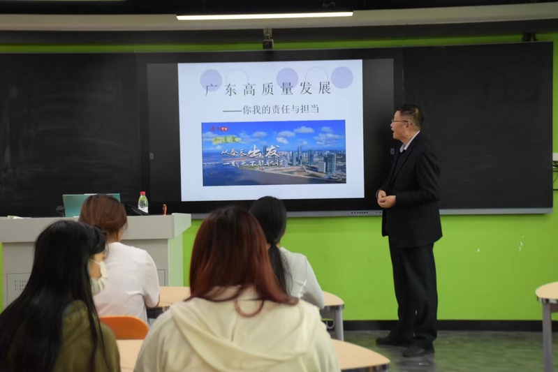 藝術(shù)與傳媒學(xué)院副院長王焰安以“廣東高質(zhì)量發(fā)展——你我的責(zé)任與擔(dān)當(dāng)”為主題為藝術(shù)與傳媒學(xué)院學(xué)生代表講授專題講座。