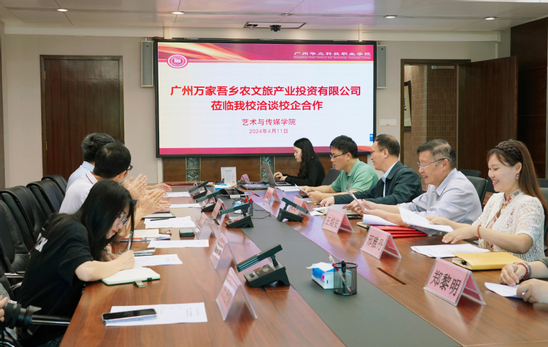 為進一步推進校企融合,開拓就業(yè)渠道,促進學(xué)校專業(yè)建設(shè)及人才培養(yǎng)模式改革。4月11日廣州萬家吾鄉(xiāng)農(nóng)文旅產(chǎn)業(yè)投資有限公司蒞臨我校洽談合作事宜,并簽訂校企合作協(xié)議。出席簽約儀式的有廣州華立科技職業(yè)學(xué)院黨委書記陳良聲,教務(wù)處副處長陳茜、藝傳學(xué)院副院長王焰安、產(chǎn)教融合辦副主任韋建林、藝傳學(xué)院相關(guān)老師,及廣州萬家吾鄉(xiāng)農(nóng)文旅產(chǎn)業(yè)投資有限公司研學(xué)經(jīng)理李建忠。
