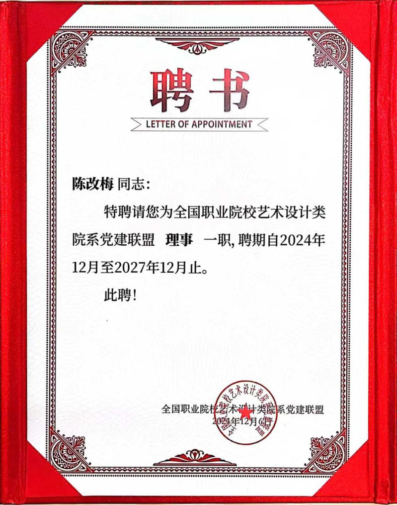 聯(lián)盟宣布成立后,審議通過了章程,并確定了廣輕大藝術(shù)設(shè)計(jì)學(xué)院為聯(lián)盟理事長(zhǎng)單位,廣州華立科技職業(yè)學(xué)院藝術(shù)與傳媒學(xué)院擔(dān)任理事單位,藝術(shù)與傳媒學(xué)院黨總支書記陳改梅受聘擔(dān)任理事一職。