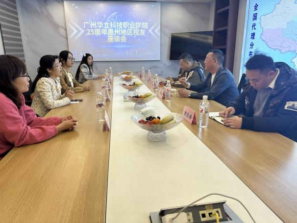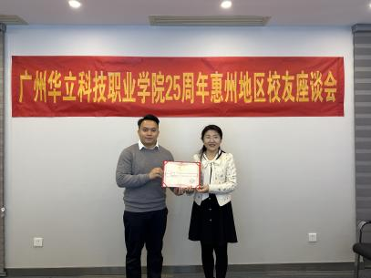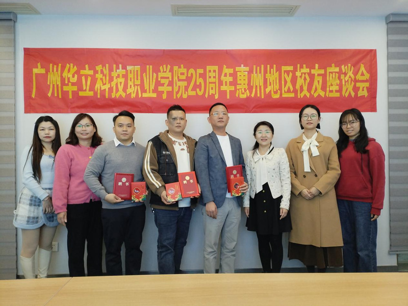 2024年12月28日,廣州華立科技職業(yè)學(xué)院成立25周年之際,為充分發(fā)揮校友智慧,凝聚校友力量,在惠州市惠城區(qū)惠鵬大廈召開校友座談會并成立惠州分會成立大會。參加此次座談會的有藝術(shù)與傳媒學(xué)院黨總支書記陳改梅、就業(yè)主任黎映如、學(xué)管主任劉嘉怡、骨干教師吳玉嫻和謝瑞祥,以及惠州地區(qū)部分校友。