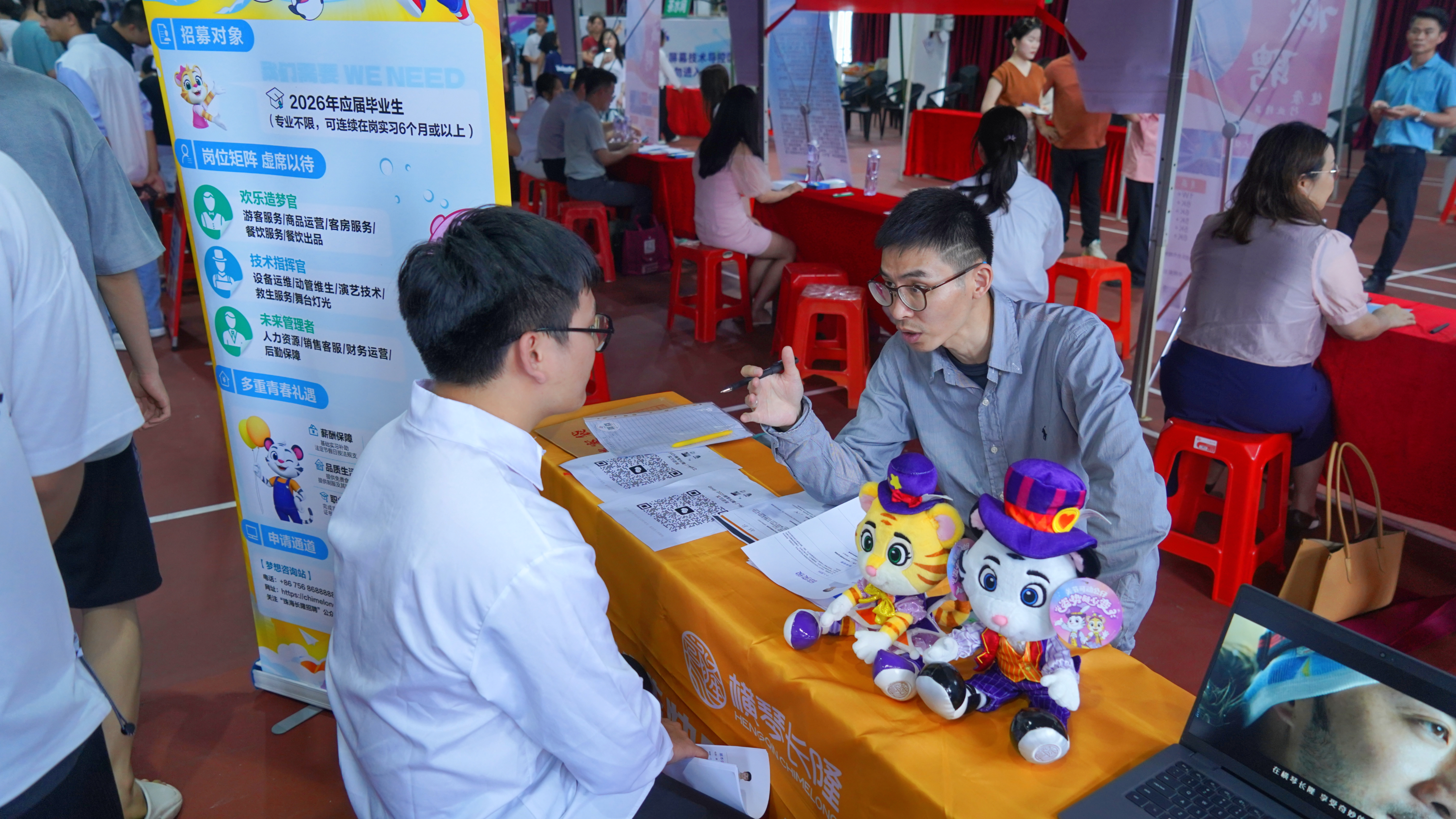 招聘會(huì)現(xiàn)場(chǎng),各企業(yè)展位前人潮涌動(dòng),同學(xué)們手持精心準(zhǔn)備的簡(jiǎn)歷,積極與招聘人員交流,詳細(xì)了解企業(yè)的招聘需求、崗位信息及發(fā)展前景。在眾多企業(yè)中,珠海長(zhǎng)隆投資發(fā)展有限公司備受關(guān)注。該公司此次受藝術(shù)與傳媒學(xué)院邀請(qǐng)前來(lái)招聘,其獨(dú)特的企業(yè)文化和優(yōu)質(zhì)的崗位吸引了不少同學(xué)駐足咨詢。