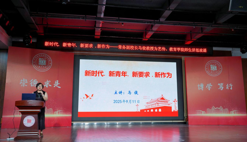 秋意漸濃啟新程,思想領(lǐng)航聚力量。9 月 11 日晚 6 點(diǎn),學(xué)校常務(wù)副校長(zhǎng)馬俊教授“新時(shí)代、新青年、新要求、新作為”為主題,在圖書(shū)館八樓報(bào)告廳藝術(shù)與傳媒學(xué)院、教育學(xué)院的700名師生代表們講授了思政第一課。馬俊教授用深刻的理論闡釋、鮮活的實(shí)踐案例,為在場(chǎng)師生打造了一堂兼具思想深度與情感溫度的思政課。