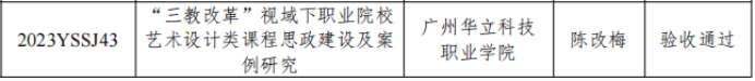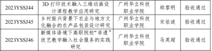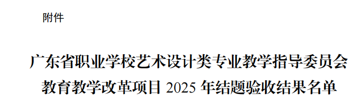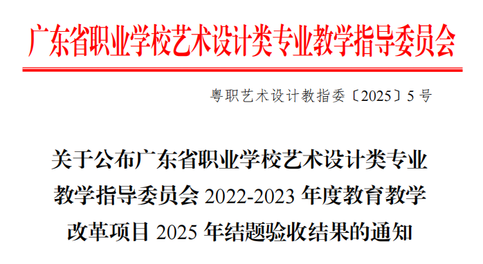 近日,依據(jù)廣東省職業(yè)學(xué)校藝術(shù)設(shè)計(jì)類專業(yè)教學(xué)指導(dǎo)委員會(huì)發(fā)布的《廣東省職業(yè)學(xué)校藝術(shù)設(shè)計(jì)類專業(yè)教學(xué)指導(dǎo)委員會(huì)2022-2023年度教育教學(xué)改革項(xiàng)目2025年結(jié)題驗(yàn)收結(jié)果的通知》(粵職藝術(shù)設(shè)計(jì)教指委〔2025〕5號(hào)),我校傳來(lái)喜訊:由馬俊教授主持的《非遺藝術(shù)價(jià)值發(fā)現(xiàn)與服務(wù)大眾相關(guān)問(wèn)題研究——以廣州欖雕為例》(項(xiàng)目編號(hào):2022YSSJ65)、吳韻怡副教授主持的《數(shù)字化技術(shù)對(duì)高職藝術(shù)類專業(yè)學(xué)生在線學(xué)習(xí)效果的影響》(項(xiàng)目編號(hào):2022YSSJ16)、黎映如副教授主持的《基于1+X證書制度的藝術(shù)設(shè)計(jì)專業(yè)“崗課賽證”融通的實(shí)踐探索》(項(xiàng)目編號(hào):2022YSSJ72)、陳改梅副教授主持的《“三教改革”視域下職業(yè)院校藝術(shù)設(shè)計(jì)類課程思政建設(shè)及案例研究》(項(xiàng)目編號(hào):2023YSSJ43)、鄭黎明副教授主持的《3D打印技術(shù)融入三維動(dòng)畫設(shè)計(jì)課程教學(xué)應(yīng)用研究》(項(xiàng)目編號(hào):2023YSSJ44)、宋依謎副教授主持的《鄉(xiāng)村振興背景下農(nóng)業(yè)與地方文化融合的農(nóng)產(chǎn)品包裝設(shè)計(jì)研究》(項(xiàng)目編號(hào):2023YSSJ45)、馬英超副教授主持的《新媒體語(yǔ)境下高職院校“非遺”技藝教學(xué)融入社會(huì)服務(wù)的實(shí)踐研究》(項(xiàng)目編號(hào):2023YSSJ46)這7項(xiàng)教育教學(xué)改革項(xiàng)目均圓滿通過(guò)結(jié)題驗(yàn)收。廣州華立科技職業(yè)學(xué)院在此次教改浪潮中斬獲豐碩成果,在數(shù)字化教學(xué)、非遺傳承、產(chǎn)教融合等多個(gè)關(guān)鍵領(lǐng)域交出了一份令人眼前一亮的創(chuàng)新答卷,為藝術(shù)設(shè)計(jì)類職業(yè)教育的高質(zhì)量發(fā)展注入了源源不斷的強(qiáng)勁動(dòng)力。