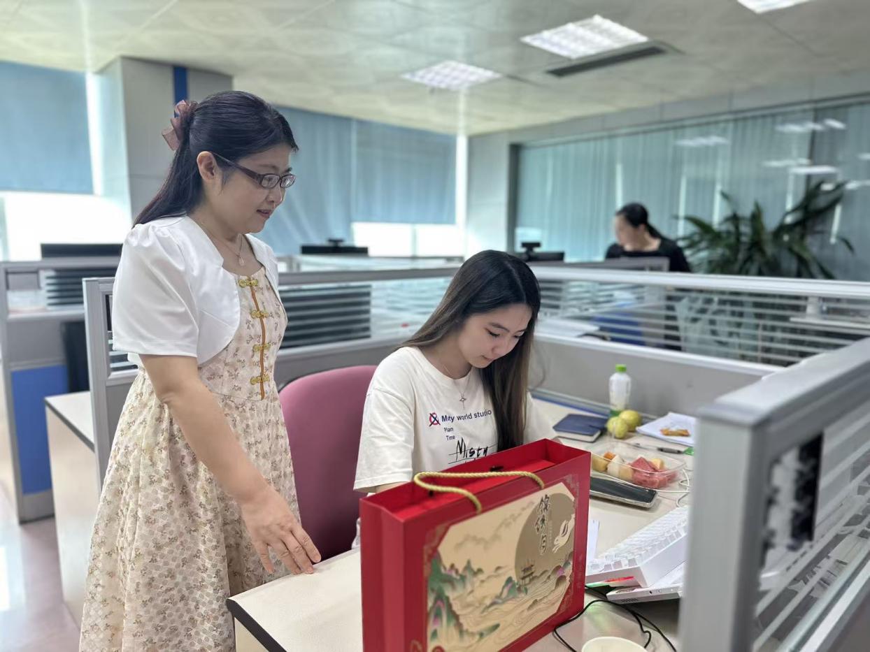 慰問期間,陳改梅書記與李雅琪同學(xué)進(jìn)行了親切交談,詳細(xì)了解了她在實(shí)習(xí)崗位上的工作內(nèi)容、生活狀況以及實(shí)習(xí)收獲。書記親手將代表團(tuán)圓和祝福的月餅禮盒送到李雅琪手中,對(duì)她能夠在中國(guó)電信這樣的大型國(guó)企穩(wěn)定實(shí)習(xí)、鍛煉自我表示了充分肯定。