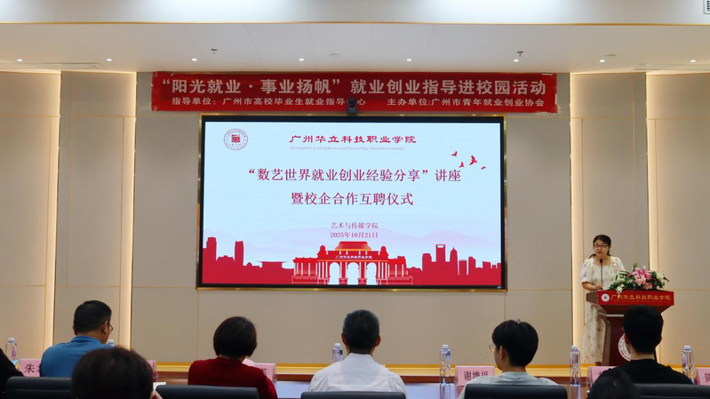 為深化產(chǎn)教融合,拓寬學生就業(yè)創(chuàng)業(yè)視野,2025年10月21日下午,廣州華立科技職業(yè)學院藝術與傳媒學院與廣州冠岳網(wǎng)絡科技有限公司在學校圖書館104隆重舉行了“數(shù)藝世界”校企合作簽約授牌互聘儀式暨就業(yè)創(chuàng)業(yè)經(jīng)驗分享會。本次活動得到了校企雙方的高度重視。學校副校長陳顯強、教務處處長孫麗英、實踐教學科科長韋建林,藝術與傳媒學院院長朱君、黨總支書記陳改梅等領導老師出席活動。廣州冠岳網(wǎng)絡科技有限公司謝增福經(jīng)理、黃龍城項目總監(jiān)作為企業(yè)方代表參會。