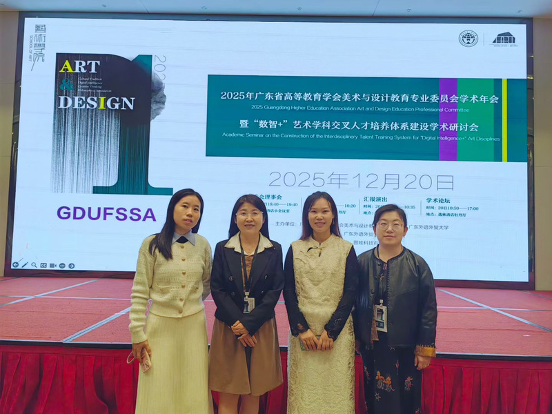 20251219日至20日,廣東省高等教育學(xué)會(huì)美術(shù)與設(shè)計(jì)教育專業(yè)委員會(huì)學(xué)術(shù)年會(huì)暨“數(shù)智+藝術(shù)學(xué)科交叉人才培養(yǎng)體系建設(shè)”高峰論壇在廣東外語(yǔ)外貿(mào)大學(xué)成功舉辦。我校藝術(shù)與傳媒學(xué)院陳改梅、馬英超、邢雅丹、陳茜四位教師受邀參會(huì),與來(lái)自全省70余所高校的近200名專家學(xué)者及行業(yè)代表共聚一堂,共話人工智能與數(shù)字經(jīng)濟(jì)時(shí)代藝術(shù)教育的變革與未來(lái)。