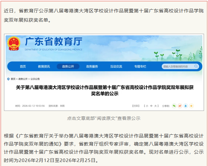 本屆賽事以“設(shè)計(jì)賦能·灣區(qū)共融”為主題,賽事旨在推進(jìn)大灣區(qū)建設(shè),深化粵港澳藝術(shù)教育交流,搭建三地師生深度互動(dòng)平臺(tái),增強(qiáng)青年學(xué)子的文化認(rèn)同感與社會(huì)責(zé)任感。本次獲獎(jiǎng)作品覆蓋面廣、精品度高,涵蓋工藝、環(huán)境設(shè)計(jì)、視覺傳達(dá)、數(shù)字媒體藝術(shù)、包裝設(shè)計(jì)等多個(gè)領(lǐng)域,全方位展現(xiàn)了學(xué)院師生多元的創(chuàng)作視野與扎實(shí)的專業(yè)功底。