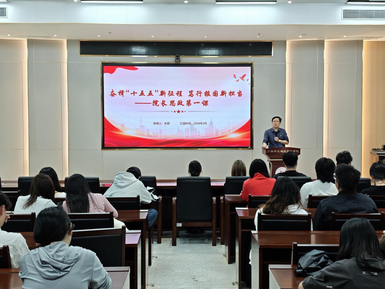 為深入學(xué)習(xí)貫徹黨的二十屆四中全會(huì)精神,引導(dǎo)青年學(xué)子認(rèn)清時(shí)代方位、勇?lián)啻菏姑?/span>2026年3月17日,藝術(shù)與傳媒學(xué)院朱君院長(zhǎng)以“奮楫‘十五五’新征程,篤行報(bào)國(guó)新?lián)?dāng)”為主題,為25級(jí)學(xué)前教育、體育教育專業(yè)的學(xué)生們帶來(lái)了一堂思想深刻、內(nèi)涵豐富、催人奮進(jìn)的思政教育課。