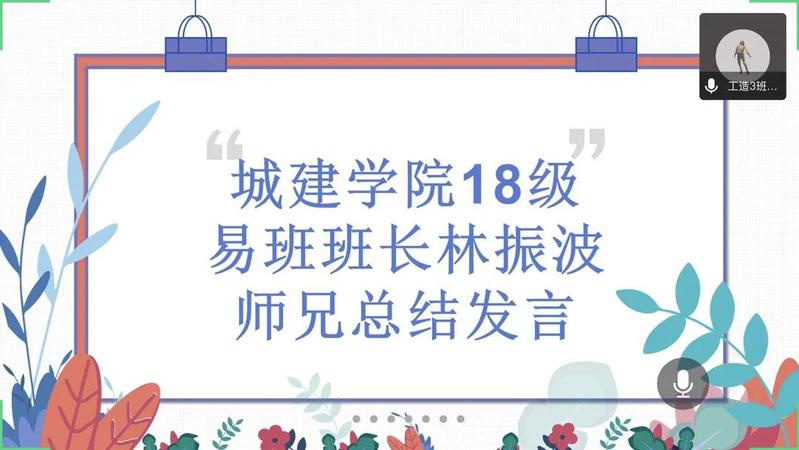 首先,由城建學(xué)院18級易班班長代表林振波師兄進(jìn)行年度工作總結(jié),他說擔(dān)任兩年的易班班長職務(wù),從易班平臺學(xué)到很多便捷學(xué)識,例如班級有投票和通知都可以在易班平臺發(fā)動,還可以查詢成績等,并對這年度工作進(jìn)行總結(jié),同時提出幾點(diǎn)工作上的經(jīng)驗(yàn)和建議給19級的師弟師妹們學(xué)習(xí)。