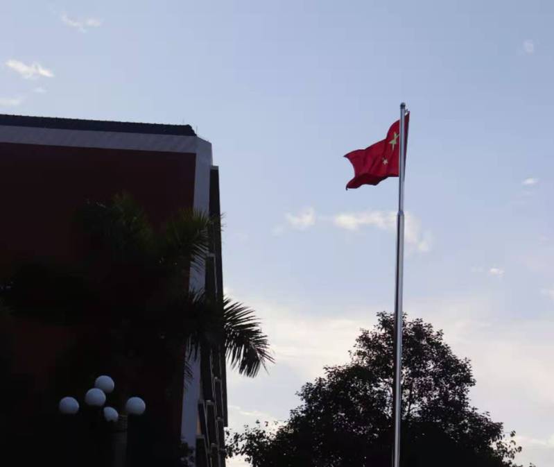 大會(huì)第一項(xiàng)升國(guó)旗,奏國(guó)歌。五星紅旗在風(fēng)中徐徐飄揚(yáng),注視著五星紅旗全體同學(xué)齊聲宣讀憲法規(guī)章,整齊明亮的宣讀聲讓人忘記寒冷。