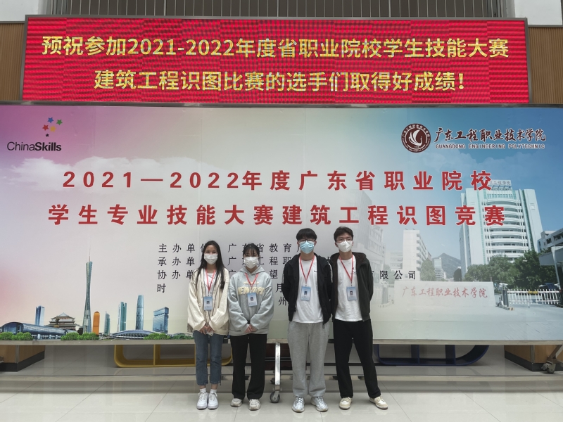 2022年1月5日至7日,2021-2022年度廣東省職業(yè)院校技能大賽建筑工程識圖賽項在廣東工程職業(yè)技術(shù)學(xué)院舉行。我校城建學(xué)院選派的由歐雪琴老師領(lǐng)隊,李貝貝、歐雪琴、馬芳、李丹老師指導(dǎo)的20工程造價專業(yè)李明浩、張思怡、龍汝、陳樹凱四位同學(xué)組成的2支參賽代表隊參加了比賽。在來自全省各高職院校的46個學(xué)校86支隊伍中,經(jīng)過激烈的角逐,李明浩、張思怡團(tuán)隊榮獲三等獎。