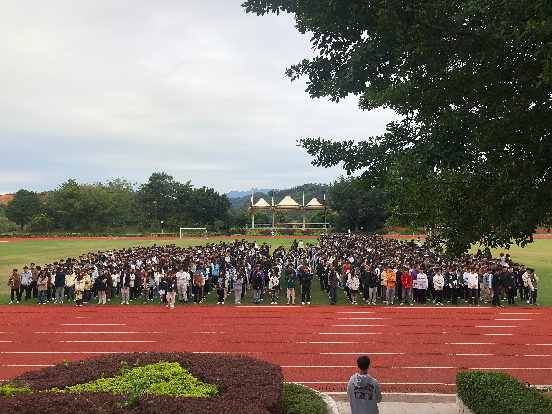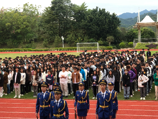 早上7:30,伴隨著激昂雄壯的《義勇軍進行曲》響起,全體師生迎著朝陽目視五星紅旗冉冉升起!