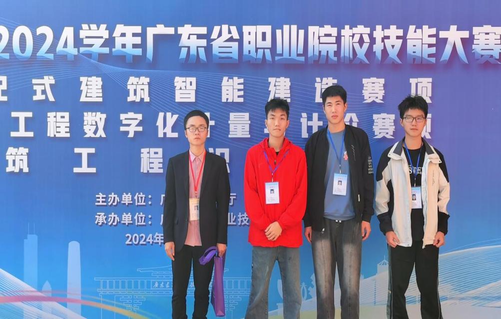 大賽于2024年1月15日--17日在廣東建設職業(yè)技術學院(清遠校區(qū))舉行,賽項分為信息化建模與方案編制、施工圖識讀與施工模擬、技能實操三個競賽模塊,時長共410分鐘,內容覆蓋面廣,從設計、生產到施工全過程考核,以建筑產業(yè)轉型升級為抓手,全面對接建筑產業(yè)數(shù)字化、工業(yè)化、智能化發(fā)展新趨勢。我院李貝貝、楊燦濤兩位指導教師自接到比賽任務起,就系統(tǒng)規(guī)劃培訓安排,針對各個模塊分工合作,精心指導學生,最終在比賽中取得了優(yōu)異的成績。