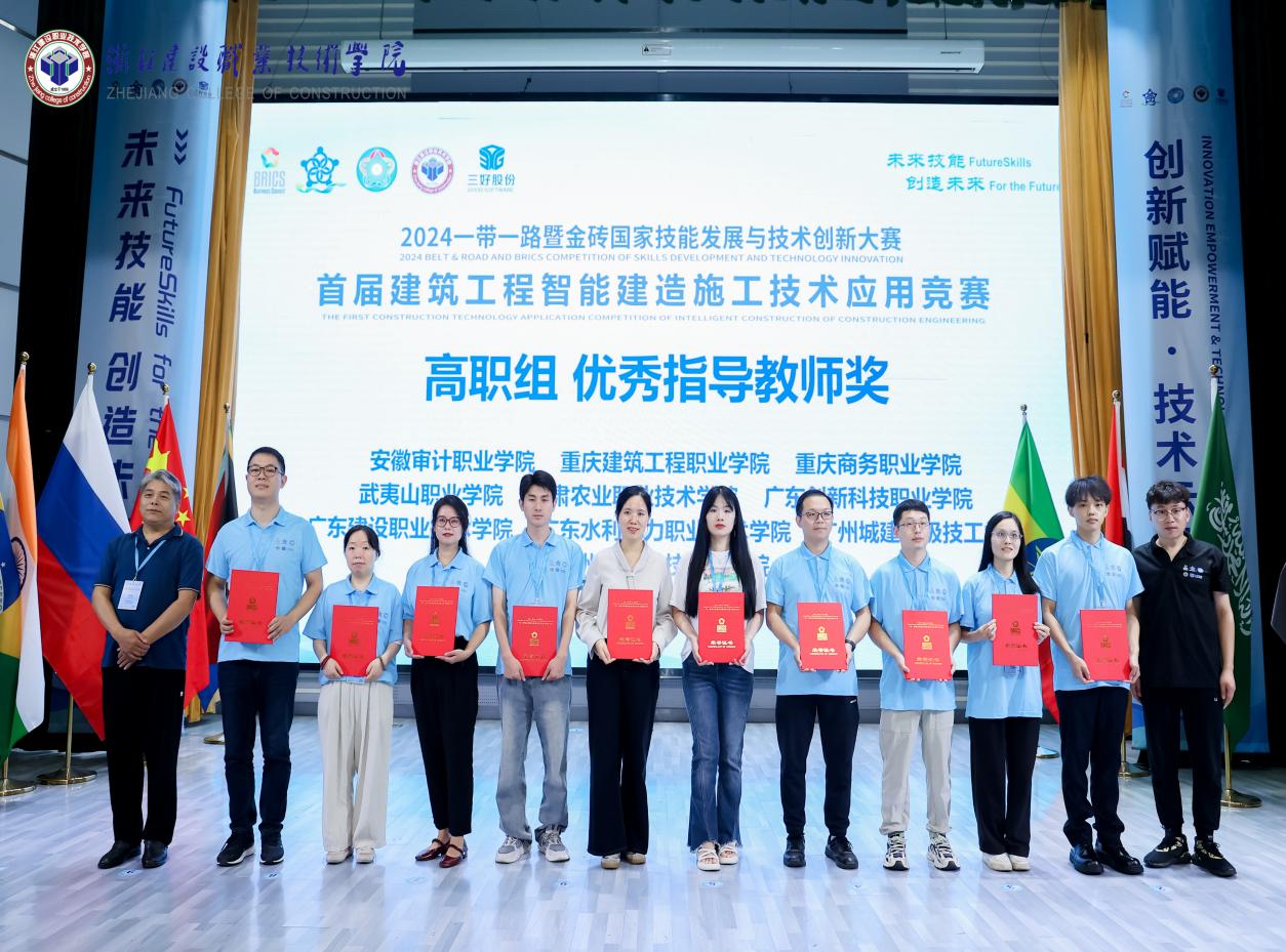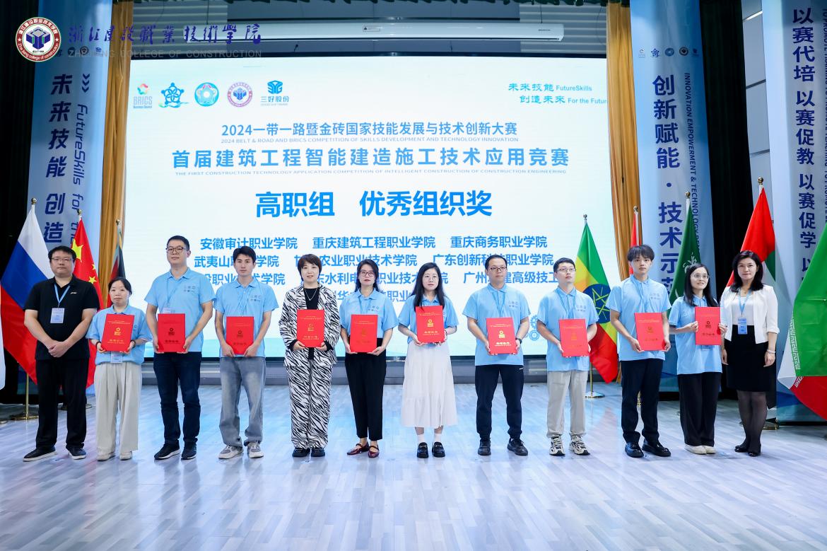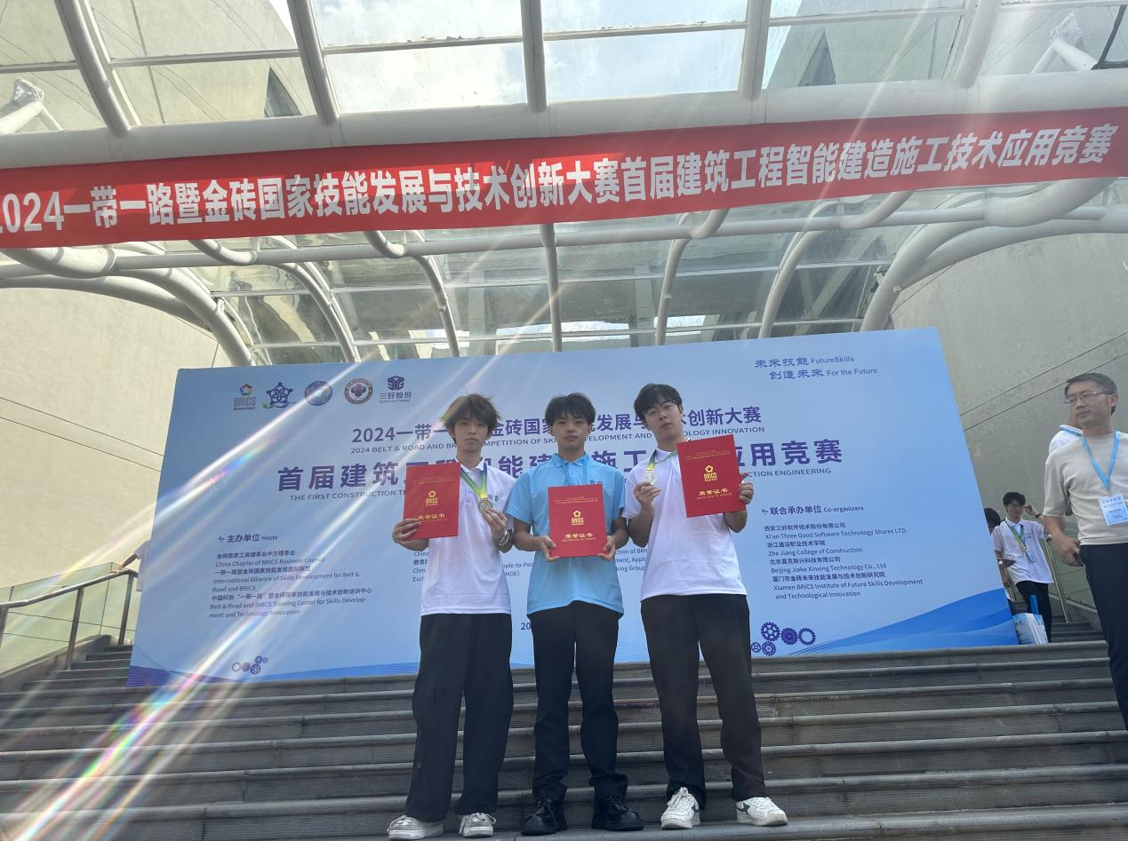 9月26日至28日,由教育部中外人文交流中心、一帶一路暨金磚國家技能發(fā)展國際聯(lián)盟和中國發(fā)明協(xié)會等單位聯(lián)合主辦,西安三好軟件技術(shù)股份有限公司、浙江建設(shè)職業(yè)技術(shù)學(xué)院等單位聯(lián)合承辦的2024一帶一路暨金磚國家技能發(fā)展與技術(shù)創(chuàng)新大賽首屆建筑工程智能建造施工技術(shù)應(yīng)用賽項(BRICS-ST-027)全國總決賽,在浙江杭州舉行。本屆大賽自4月起,通過校園選拔賽、全國區(qū)域選拔賽,共有來自全國600余所高校、7萬余名師生參與,最終來自全國31個?。ㄗ灾螀^(qū)、直轄市)和孟加拉國、馬來西亞等國際留學(xué)生共計382所院校、415支隊伍、1500余名師生入圍總決賽。經(jīng)過激烈角逐,我校城建學(xué)院學(xué)生徐文升、黃梓煥表現(xiàn)出色,在首屆建筑工程智能建造施工技術(shù)應(yīng)用賽項決賽(??平M)中榮獲全國二等獎,指導(dǎo)教師喬亮、甘英浩榮獲優(yōu)秀指導(dǎo)教師稱號,同時,我校憑借前期出色的組織工作,榮獲組委會頒發(fā)的優(yōu)秀組織獎。