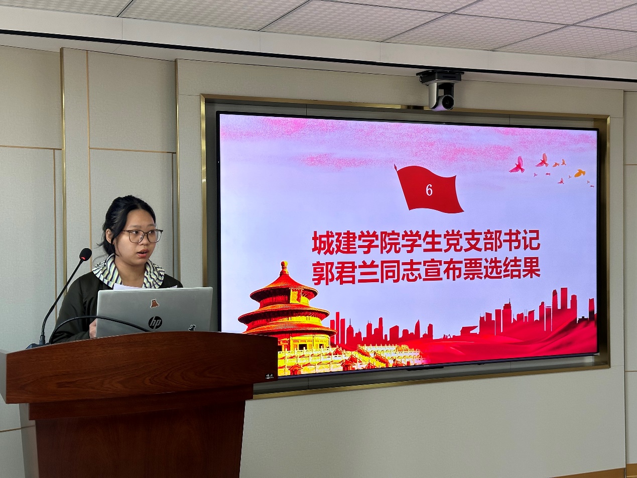 黨總支專職副書記郭君蘭同志宣布票選結(jié)果,宣布聶愉同志等4位同志均已贊成票10票、反對票0票和棄權(quán)票0票通過大會(huì)表決成為中共預(yù)備黨員。