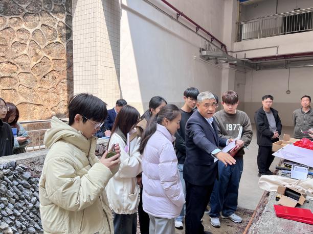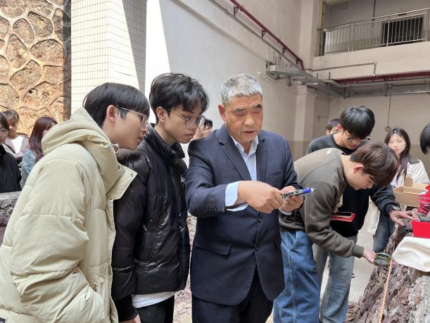 上課伊始,閻學(xué)欣教授帶領(lǐng)觀摩的教師、學(xué)生參觀“四探”實(shí)訓(xùn)場(chǎng),介紹了地質(zhì)勘探中“四探”具體方法,即槽探、坑探、井探、鉆探在找礦中的運(yùn)用。在教學(xué)過(guò)程中,詳細(xì)講解了探槽編錄的目的、意義、方法及相關(guān)規(guī)范要求,他指出,精準(zhǔn)的探槽編錄能夠?yàn)楹罄m(xù)的地質(zhì)研究和工程建設(shè)提供關(guān)鍵依據(jù),任何一個(gè)細(xì)節(jié)的疏忽都可能影響到整體的判斷;隨后,閻教授在現(xiàn)場(chǎng)進(jìn)行了認(rèn)真、細(xì)致的操作示范,從探槽的測(cè)量定位、地質(zhì)現(xiàn)象的觀察描述,到繪制編錄圖的步驟與要點(diǎn),都一一進(jìn)行了演示,并強(qiáng)調(diào)了操作過(guò)程中的注意事項(xiàng)。