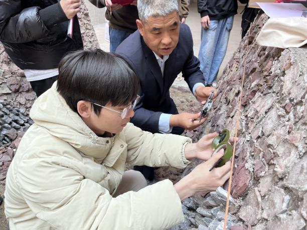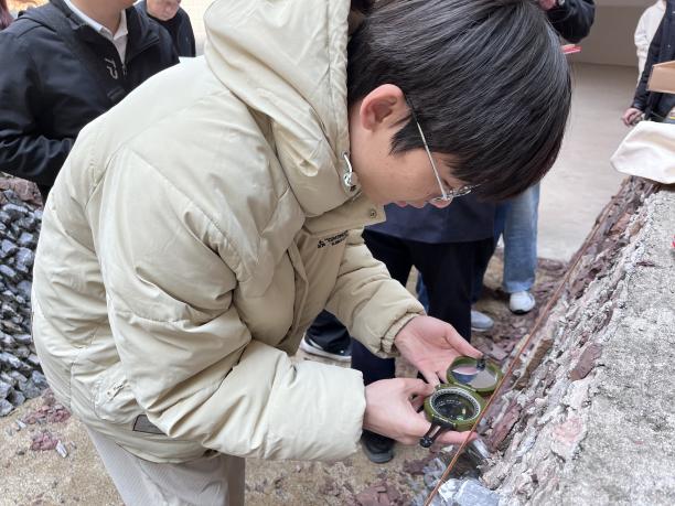 在實(shí)際操作環(huán)節(jié),學(xué)生以組為單位,按照崗位(前后測(cè)手、分層員、記錄員、產(chǎn)狀測(cè)量員、采樣員)扮演角色,積極參與到實(shí)踐中,他們手持地質(zhì)錘、羅盤(pán)、放大鏡、鋼尺等工具,認(rèn)真觀察探槽壁上的巖石特征、地層分界線以及各種地質(zhì)構(gòu)造現(xiàn)象,詳細(xì)記錄各項(xiàng)數(shù)據(jù),并嘗試?yán)L制編錄圖。遇到問(wèn)題時(shí),學(xué)生們主動(dòng)向教師請(qǐng)教,教師則耐心地為學(xué)生答疑解惑,給予針對(duì)性的指導(dǎo)和建議,確保每個(gè)學(xué)生都能掌握正確的操作方法。