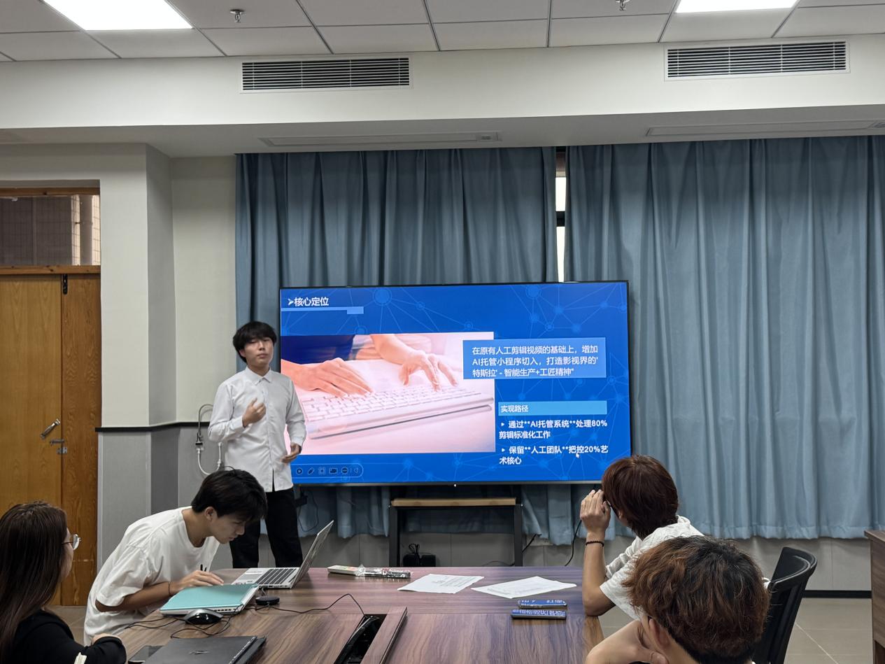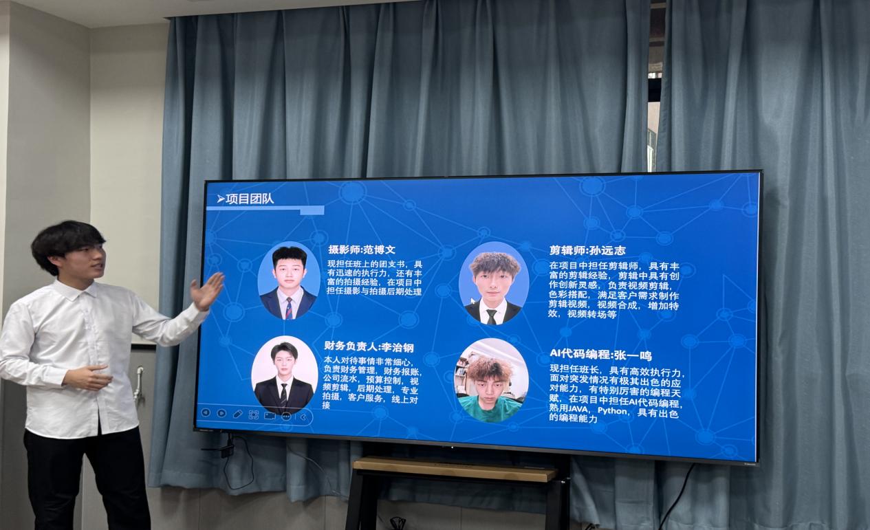 在項(xiàng)目展示環(huán)節(jié),"光影躍遷"團(tuán)隊(duì)負(fù)責(zé)人董自雄以AI智能剪輯為切入點(diǎn),通過(guò)全平臺(tái)分發(fā)系統(tǒng)。該項(xiàng)目憑借"AI粗剪+人工精修"的雙核創(chuàng)新架構(gòu),提出剪輯市場(chǎng)需求的解決方案。
