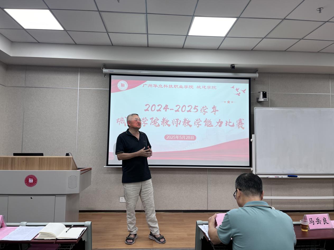 為深入貫徹落實職業(yè)教育精神,深化產教融合,提升教師教學水平,2025年5月28日,城建學院迎來2024-2025學年教師教學能力比賽的精彩時刻,將5月職業(yè)教育周暨勞動教育活動月推向新的高潮!本次活動旨在弘揚勞動精神,深化職業(yè)教育內涵,展現(xiàn)城建學院教師的卓越風采,讓每一位師生在實踐中錘煉技能,在勞動中感悟成長。出席本次比賽的評委有教育學院院長馬岳良、計算機信息工程學院副院長郭觀七、電力與智能制造學院副院長馬洪德、經濟管理學院副院長劉軍根、城建學院院長徐耀鑒,觀賽嘉賓有教務處副處長伍思立、教學督導隋良志及城建學院全體老師。
