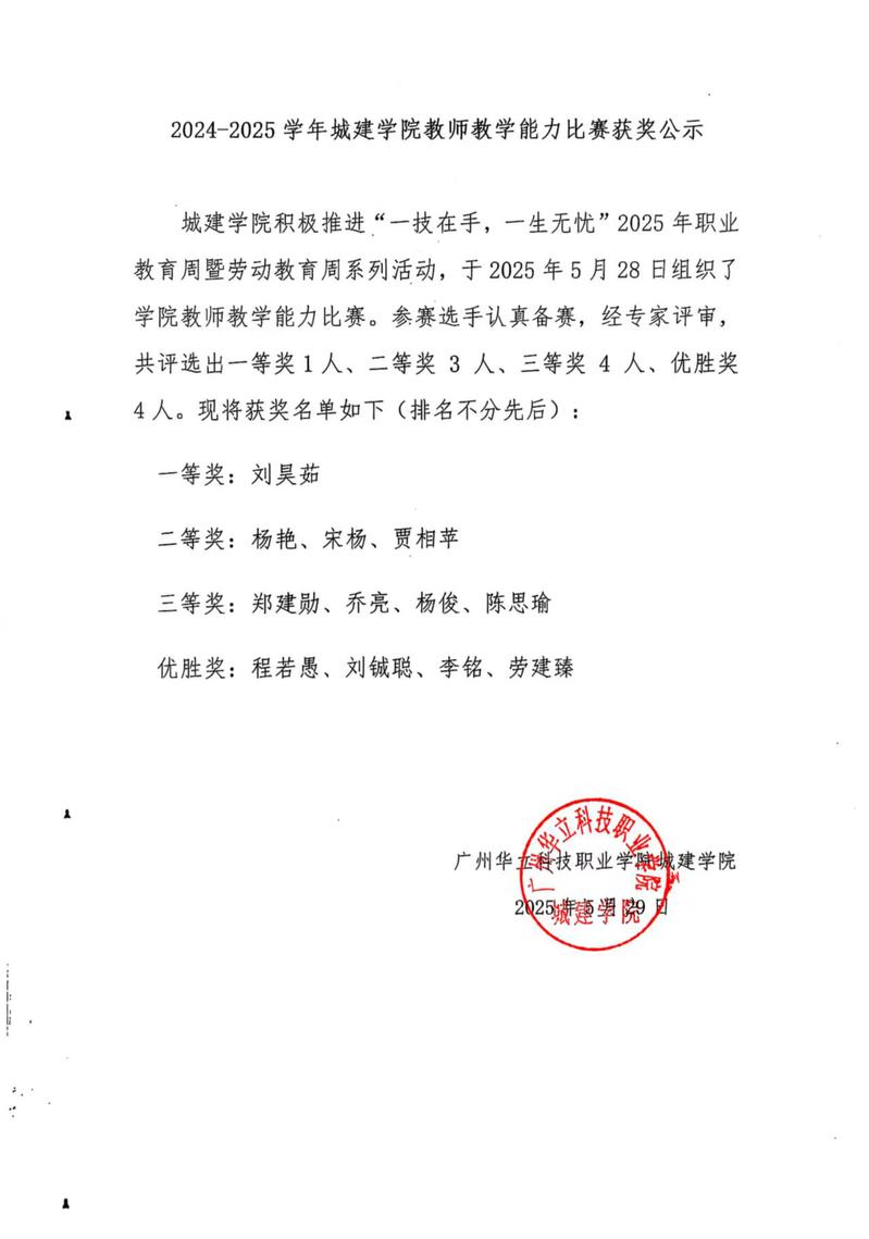 2024-2025學(xué)年城建學(xué)院教師教學(xué)能力比賽獲獎(jiǎng)公示