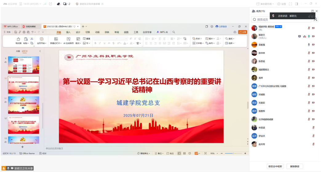 2025年7月21日,城建學院黨總支召開深入貫徹中央八項規(guī)定精神學習教育推進會。會議以線上形式舉行,通過集中學習、案例剖析、工作部署等環(huán)節(jié),推動全體師生黨員深化思想認識、強化行動自覺。