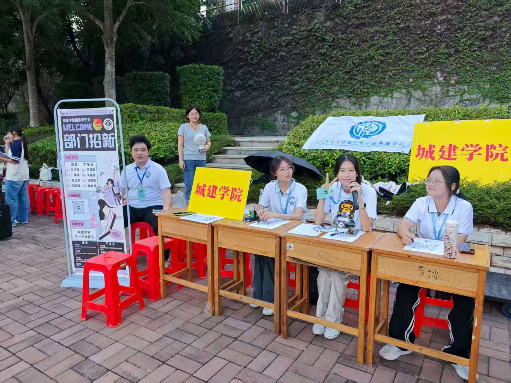 2025 年 9 月 15 日,城建學(xué)院團(tuán)委學(xué)生會(huì)在圖書館樓下小廣場(chǎng)正式舉行招新活動(dòng)。學(xué)院黨總支書記、副院長(zhǎng)吳毅強(qiáng),團(tuán)委書記楊威豪及全體輔導(dǎo)員老師來(lái)到招新現(xiàn)場(chǎng),了解招新組織情況,并與工作人員、咨詢學(xué)生親切交流,詳細(xì)詢問(wèn)團(tuán)學(xué)各部門招新需求、報(bào)名人數(shù)及學(xué)生意向偏好,為招新活動(dòng)的順利推進(jìn)提供指導(dǎo)。
