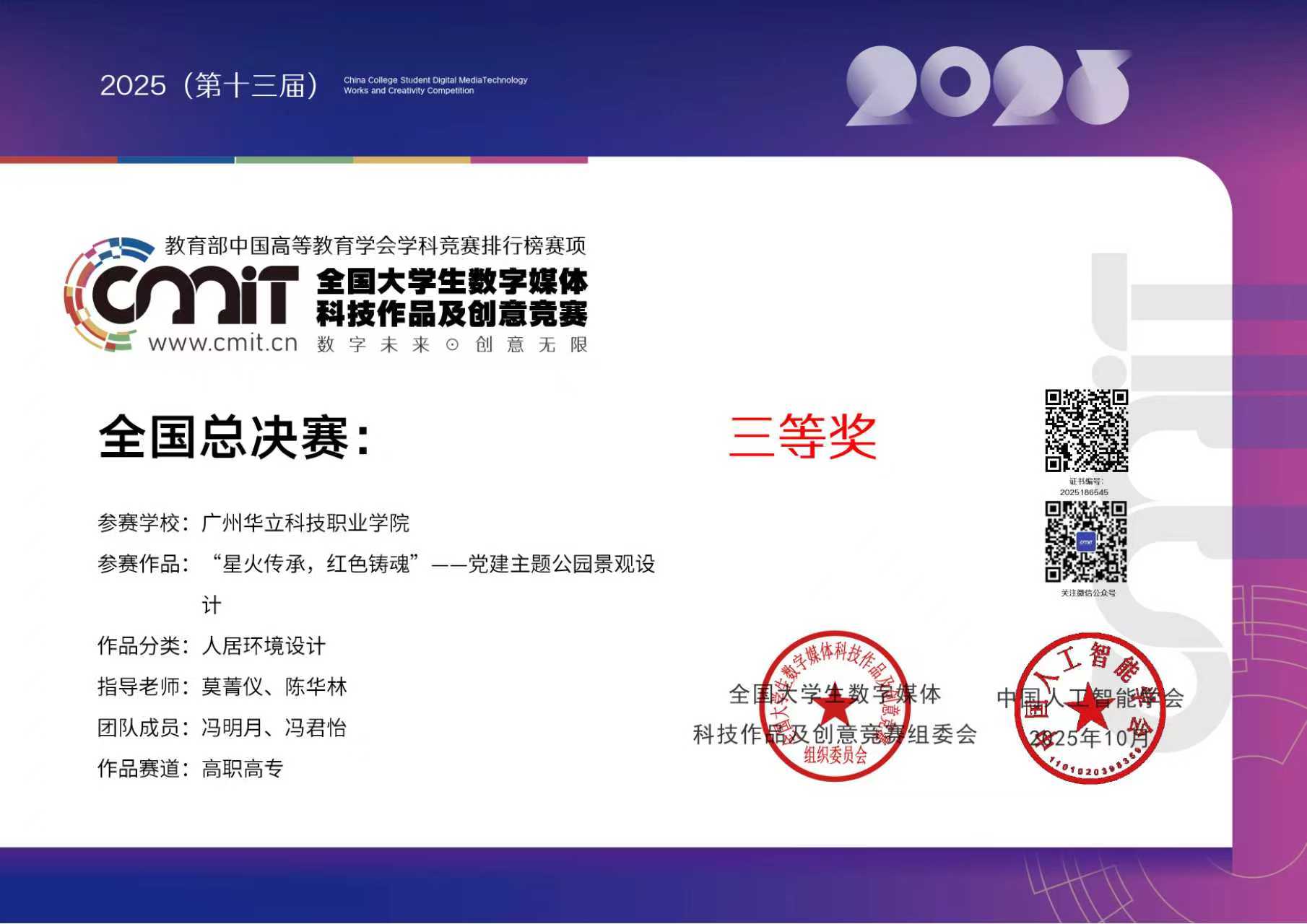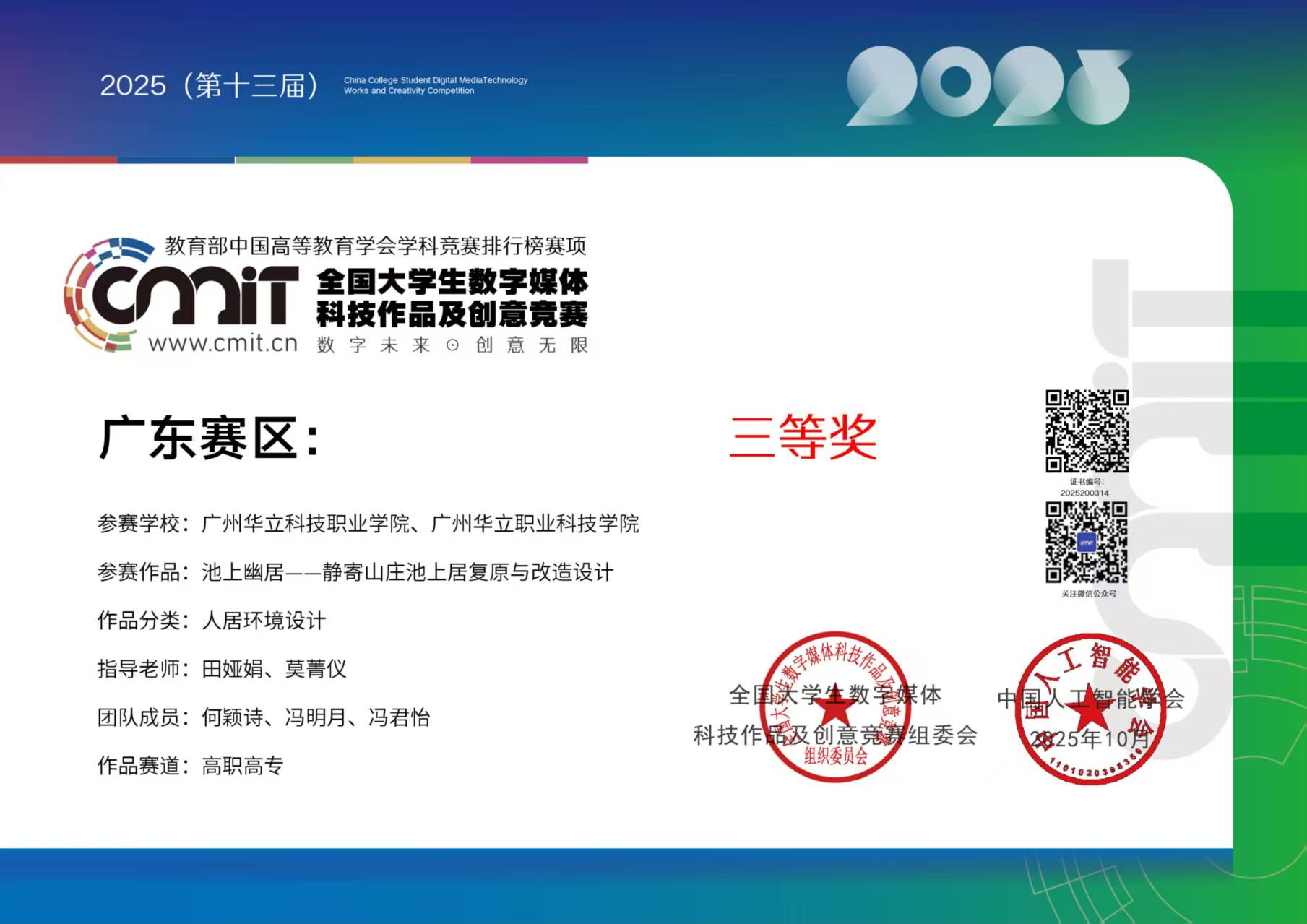 近日,備受全國(guó)高校關(guān)注的第 13 屆全國(guó)大學(xué)生數(shù)字媒體科技作品及創(chuàng)意競(jìng)賽圓滿(mǎn)落幕。城建學(xué)院師生憑借扎實(shí)的專(zhuān)業(yè)功底、創(chuàng)新的設(shè)計(jì)理念與出色的實(shí)踐能力,在全國(guó)眾多參賽隊(duì)伍中脫穎而出,最終斬獲全國(guó)總決賽三等獎(jiǎng)2項(xiàng),廣東省賽區(qū)二等獎(jiǎng)2項(xiàng)及三等獎(jiǎng)2項(xiàng)的優(yōu)異成績(jī),充分展現(xiàn)了學(xué)院在數(shù)字媒體教育領(lǐng)域的育人成果與學(xué)科實(shí)力。本次大賽是由全國(guó)大學(xué)生數(shù)字媒體科技作品及創(chuàng)意競(jìng)賽組委會(huì)主辦,旨在搭建高校數(shù)字媒體專(zhuān)業(yè)師生交流學(xué)習(xí)的平臺(tái),激發(fā)大學(xué)生的創(chuàng)新思維與科技創(chuàng)造力,推動(dòng)數(shù)字媒體技術(shù)與創(chuàng)意設(shè)計(jì)在各行業(yè)的融合應(yīng)用。大賽已連續(xù)舉辦13屆,是為藝術(shù)設(shè)計(jì)領(lǐng)域的高水平知名賽事,也是我院師生積極參與的重要專(zhuān)業(yè)競(jìng)賽之一。