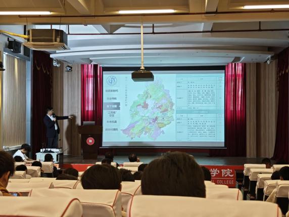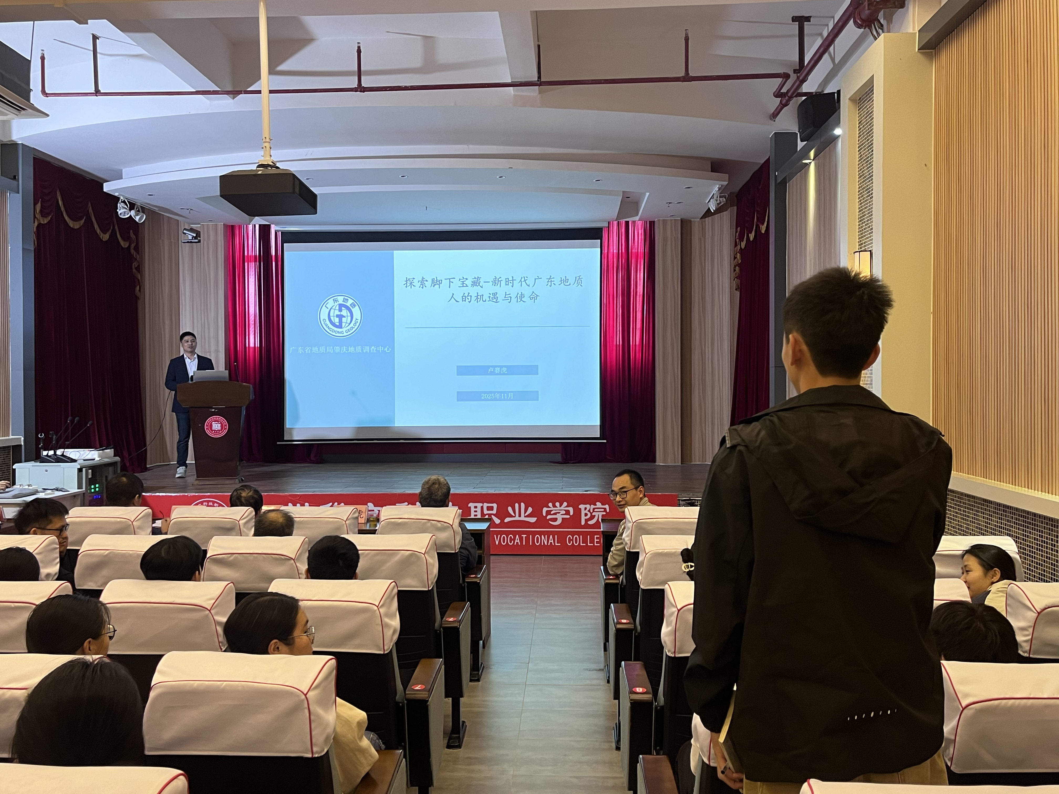 為展現(xiàn)新時代地質工作的價值與使命,拓寬師生學術視野,11月14日,城建學院在云浮校區(qū)開展地質專題講座。本次講座特邀廣東地質局肇慶地質調查中心礦產地質部部長盧賽虎主講,以《探索腳下寶藏——新時代廣東地質人的機遇和使命》為主題,教務處副處長李濤、教學督導隋良志、城建學院黨總支書記兼副院長吳毅強及學院相關專業(yè)師生代表共計120余人到場聆聽。