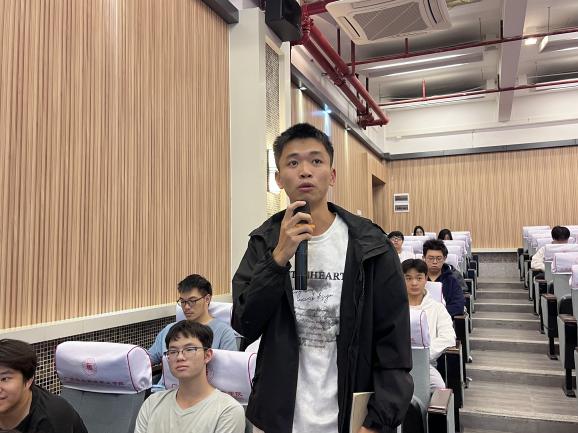 隨后,盧賽虎部長以提問引發(fā)同學們思考:“大家認為‘礦’是什么?生活中見過哪些礦?”問題拋出后,現(xiàn)場學子踴躍舉手發(fā)言?!拔乙娺^鐵礦,是黑色的石塊!”“煤炭算不算礦?”面對同學們的回答,盧部長逐一點評,從專業(yè)角度給出“礦”的定義,并列舉了金屬礦、非金屬礦、能源礦等常見礦產類型,結合廣東本地的礦產資源分布實例,讓同學們對“礦”有了系統(tǒng)認知?;又?,同學們積極提問,從行業(yè)就業(yè)前景到專業(yè)學習難點,盧部長耐心解答,現(xiàn)場氛圍熱烈,掌聲不斷。
