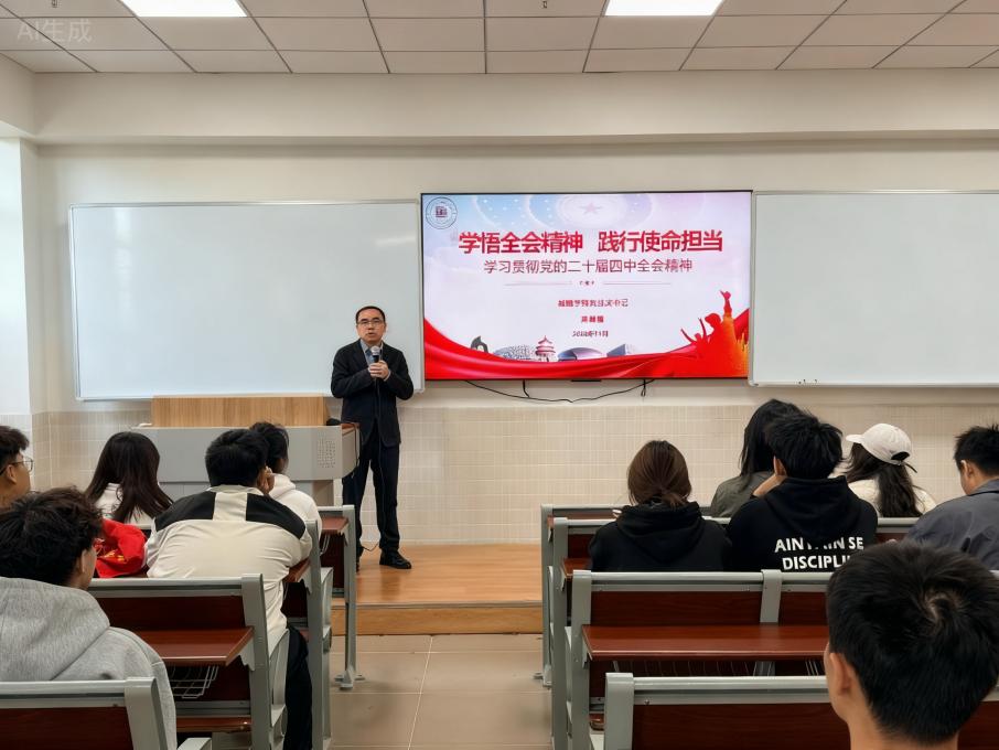 2025年11月28日,城建學(xué)院黨總支書記吳毅強(qiáng)面向學(xué)院師生開展黨的二十屆四中全會精神專題宣講,引導(dǎo)青年學(xué)子將個人理想融入國家發(fā)展大局,在中國式現(xiàn)代化建設(shè)中踐行青春擔(dān)當(dāng)。