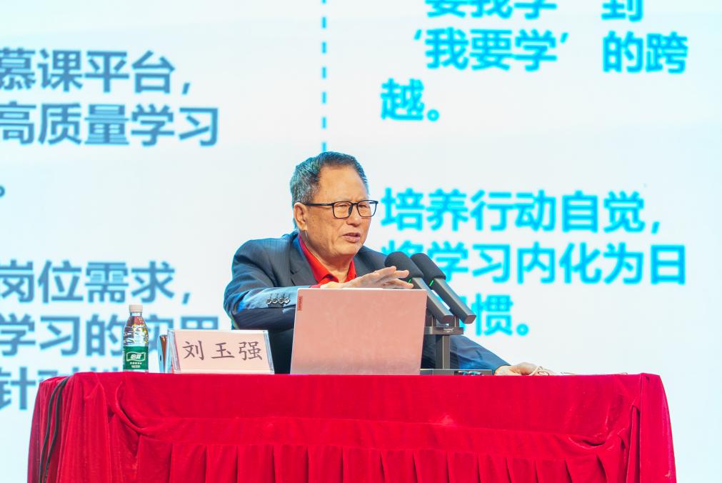 講座中,劉玉強教授圍繞“時代召喚”“為學(xué)方法”“思想格局”“實干擔(dān)當(dāng)”四大維度展開系統(tǒng)闡述。他結(jié)合職業(yè)教育在強國建設(shè)中的戰(zhàn)略支撐作用,分析當(dāng)前大學(xué)生應(yīng)具備的學(xué)習(xí)意識與高校育人使命,通過真實行業(yè)案例剖析專業(yè)價值,引導(dǎo)同學(xué)們轉(zhuǎn)變學(xué)習(xí)觀念、掌握閉環(huán)學(xué)習(xí)方法、樹立扎根基層的奮斗意識,鼓勵大家立足專業(yè)、扎根基層,以青春力量助力國家建設(shè)。
