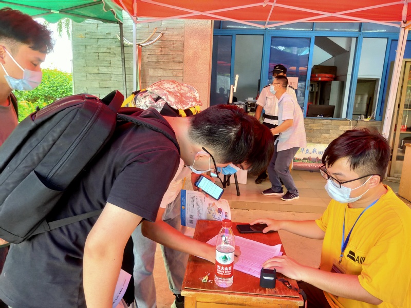 當(dāng)天上午,學(xué)校的正大門早早搭起了帳篷,返校的學(xué)生入校需經(jīng)過各個(gè)關(guān)卡,通過檢測(cè)體溫、查驗(yàn)葵花碼、查看移動(dòng)軌跡,對(duì)行李和身體表面消毒,查驗(yàn)學(xué)生身份和核對(duì)學(xué)生宿舍信息等多道程序,方能入校。