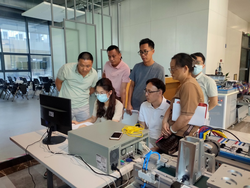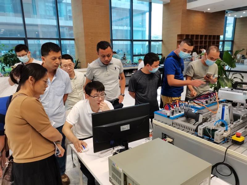 本期(班)培訓(xùn)集中面授21天,網(wǎng)絡(luò)研修42學(xué)時(shí)。具體培訓(xùn)分2個(gè)階段進(jìn)行:第一階段:7月11日-8月3日,網(wǎng)絡(luò)研修和集中研修。主要內(nèi)容為:運(yùn)動(dòng)控制系統(tǒng)開發(fā)與應(yīng)用(初級),控制器的安裝、供料系統(tǒng)的搭建、物料輸送系統(tǒng)的搭建、搬運(yùn)系統(tǒng)的搭建、綜合供料系統(tǒng)應(yīng)用案例等5項(xiàng)任務(wù)。運(yùn)動(dòng)控制系統(tǒng)開發(fā)與應(yīng)用(中級),伺服電機(jī)調(diào)試、伺服電機(jī)選型、MFC界面制作、供料系統(tǒng)與流水線輸送、按鈕控制絲杠模組運(yùn)動(dòng)、手脈輪控制絲杠模組運(yùn)動(dòng)、設(shè)備回零程序、單軸變速運(yùn)動(dòng)、跟蹤打標(biāo)、平面激光打標(biāo)、計(jì)算定位精度和重復(fù)定位精度、XY運(yùn)動(dòng)平臺的優(yōu)化等12項(xiàng)任務(wù)。第二階段:8月4日-8月8日,集中研修,主要內(nèi)容為:固高科技跟崗見習(xí)綜合實(shí)踐等,參觀了松山湖國際機(jī)器人產(chǎn)業(yè)基地和固高科技園。了解了國際機(jī)器人基地的發(fā)展歷程及固高生態(tài)體系、交流了通過聯(lián)結(jié)香港、內(nèi)地和全球的高校、研究所、企業(yè)、上下游供應(yīng)鏈等資源進(jìn)行機(jī)器人及相關(guān)行業(yè)創(chuàng)業(yè)孵化的成功案例。
