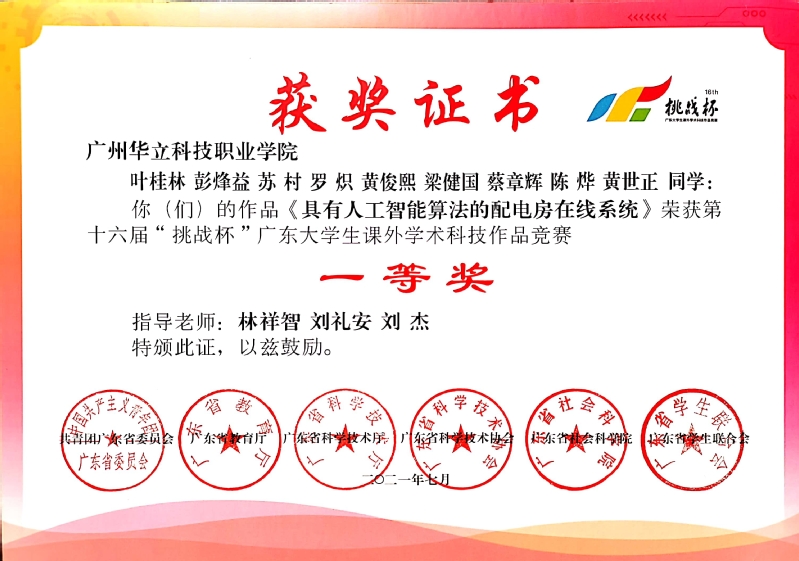 2021年7月,電力學(xué)院學(xué)子參加第十六屆“挑戰(zhàn)杯”廣東大學(xué)生課外學(xué)術(shù)科技作品競賽,共有4個團隊通過學(xué)校評審,經(jīng)過省專家網(wǎng)評,有2個項目入圍終審決賽。7月17日至18日,由省團委、省教育廳、省科技廳、省科協(xié)、省社科院、省學(xué)聯(lián)共同舉辦的第十六屆“挑戰(zhàn)杯”廣東大學(xué)生課外學(xué)術(shù)科技作品競賽終審決賽取得優(yōu)異成績。電力與智能制造學(xué)院學(xué)子不負眾望,共獲4個獎項,分別獲得一等獎1項,二等獎1項,三等獎2項。