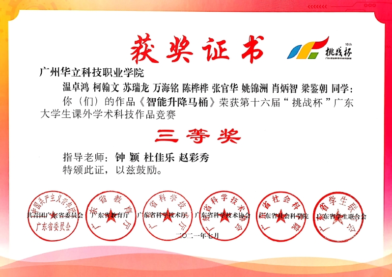 2021年7月,電力學(xué)院學(xué)子參加第十六屆“挑戰(zhàn)杯”廣東大學(xué)生課外學(xué)術(shù)科技作品競賽,共有4個團(tuán)隊通過學(xué)校評審,經(jīng)過省專家網(wǎng)評,有2個項目入圍終審決賽。7月17日至18日,由省團(tuán)委、省教育廳、省科技廳、省科協(xié)、省社科院、省學(xué)聯(lián)共同舉辦的第十六屆“挑戰(zhàn)杯”廣東大學(xué)生課外學(xué)術(shù)科技作品競賽終審決賽取得優(yōu)異成績。電力與智能制造學(xué)院學(xué)子不負(fù)眾望,共獲4個獎項,分別獲得一等獎1項,二等獎1項,三等獎2項。