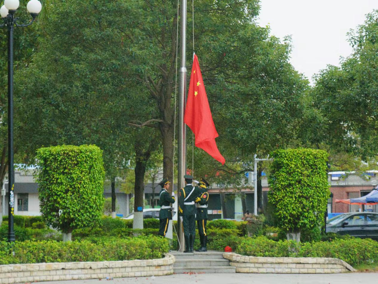 升旗儀式,在七點(diǎn)半準(zhǔn)時(shí)進(jìn)行;伴隨著莊嚴(yán)的《中華人民共和國國歌》,全體師生面向國旗行注目禮,五星紅旗在英姿颯爽的國旗手手中冉冉升起。
