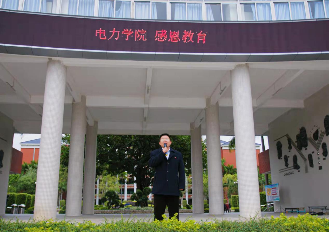 升旗結(jié)束后,由曾祥彪副院長為本次升旗儀式進(jìn)行講話,主題是:“感恩教育”。曾副院長提到: