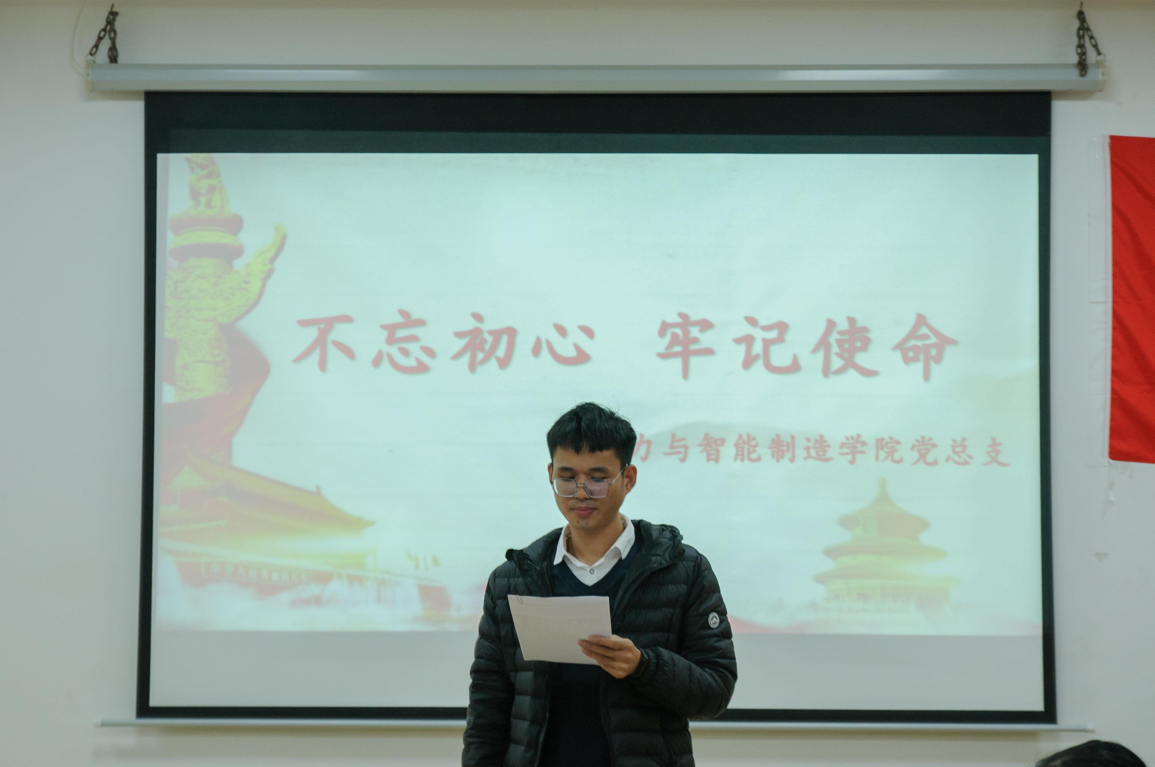 電力與智能制造學(xué)院黨總支書記、第二黨支部書記鄭理廣發(fā)表講話,他首先對(duì)當(dāng)下的時(shí)事發(fā)表了看法,希望參加通表大會(huì)的發(fā)展對(duì)象同學(xué)們能夠建立一個(gè)關(guān)注時(shí)事的態(tài)度,最后,衷心祝愿6位發(fā)展對(duì)象可以如期被吸收為中共預(yù)備黨員。