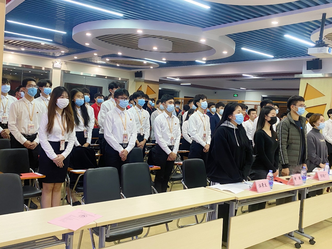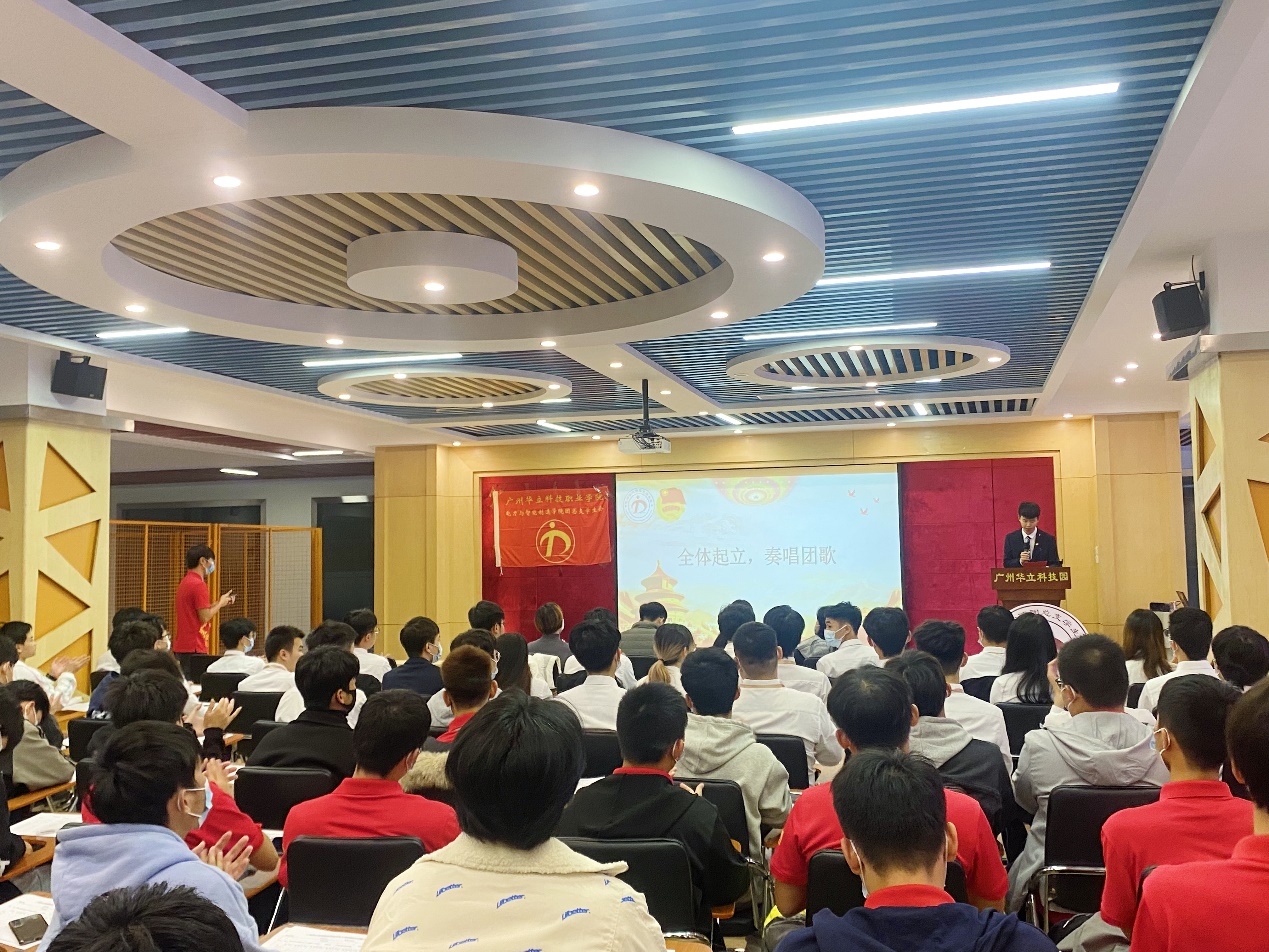 會議開始前,全體師生奏唱團(tuán)歌,以高昂的熱情唱出對中國共青團(tuán)的愛戴。