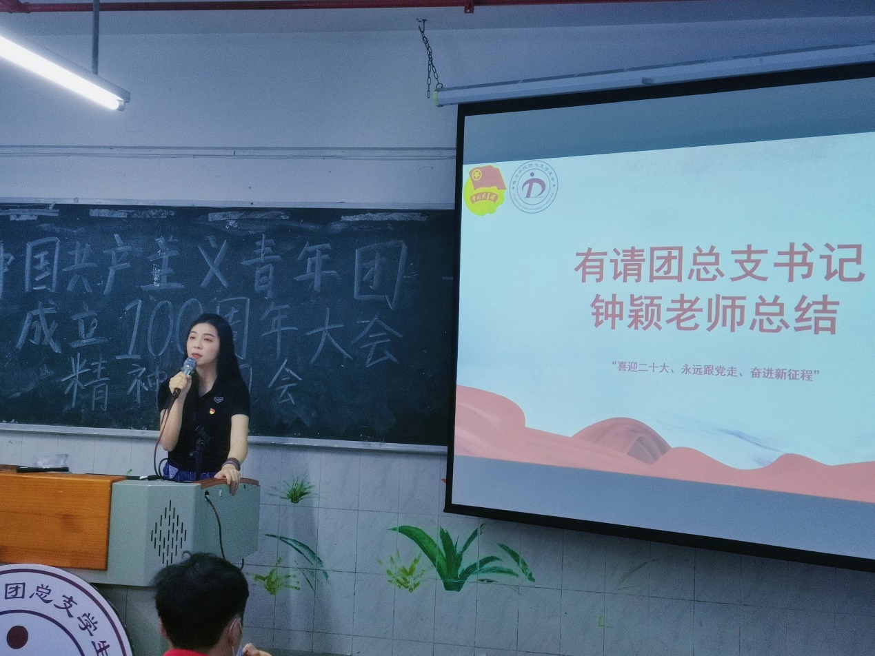 會議尾聲,學院團總支書記鐘穎老師指出:青年的命運從來都與時代緊密相連,歷經(jīng)百年征途,共青團作為黨和國家與青年之間橋梁和紐帶,為黨培養(yǎng)了許多優(yōu)秀的助手和后備軍。