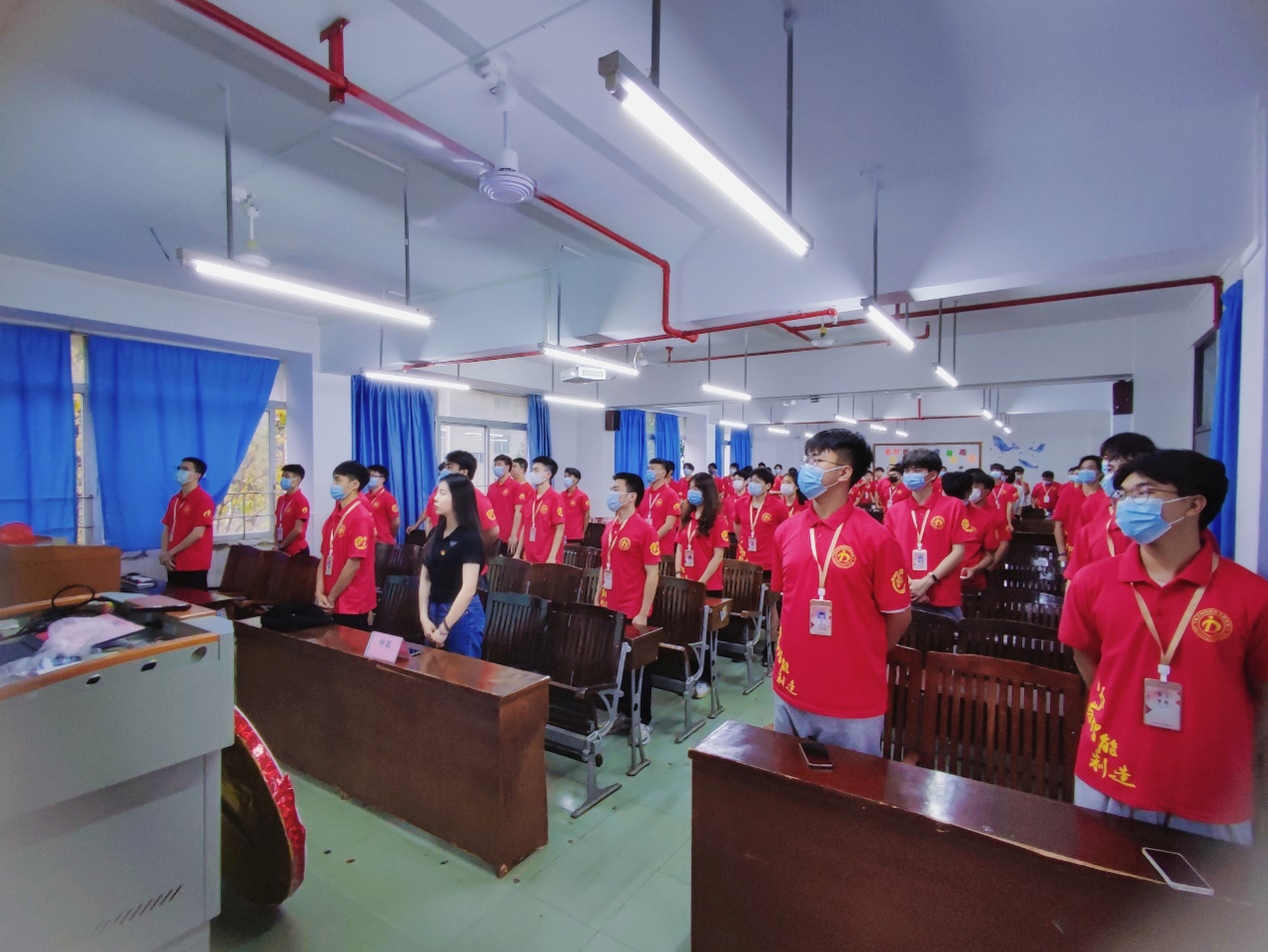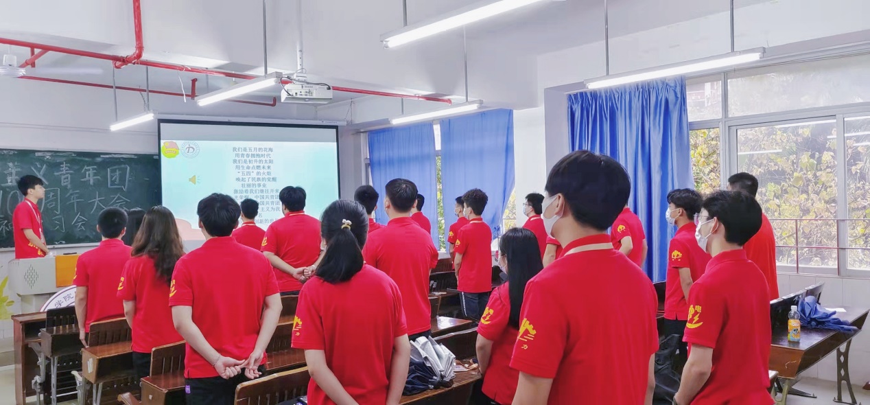 當熟悉的旋律響起時,每個人站得筆直,齊聲高唱共青團團歌《光榮啊,中國共青團》。