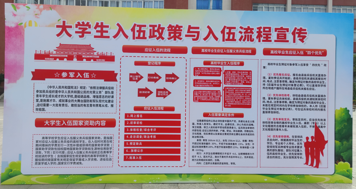 《中華人民共和國(guó)憲法》規(guī)定:“依照法律服兵役和參加民兵組織是中華人民共和國(guó)公民的光榮義務(wù)”部隊(duì)是青年學(xué)生成長(zhǎng)成才的大學(xué)校,是砥礪品格、增強(qiáng)意志的好課堂,是施展才華、成就事業(yè)的大舞臺(tái)國(guó)防和軍隊(duì)現(xiàn)代化建設(shè),迫切需要一大批有責(zé)任、敢擔(dān)當(dāng)?shù)挠兄厩嗄陻y筆從戎、報(bào)效祖國(guó)。